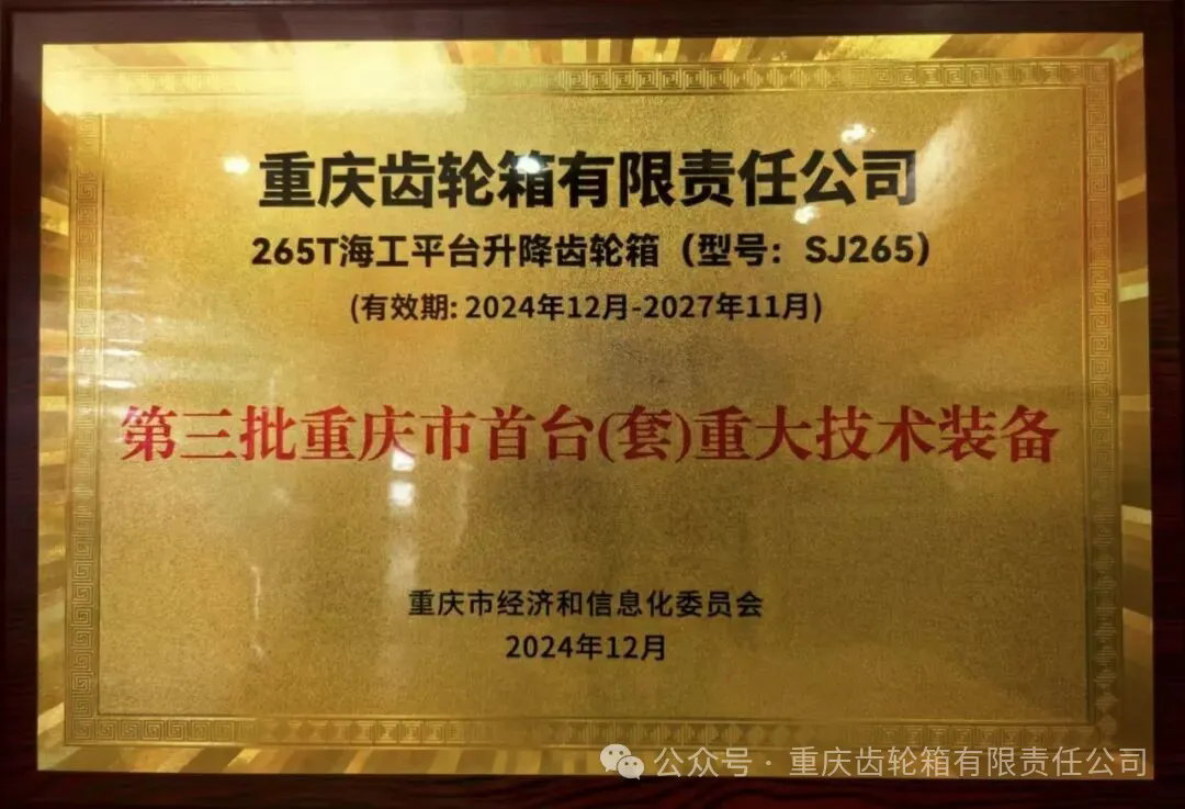 近日,由重慶市經(jīng)濟(jì)和信息化委員會主辦的2025年重慶市首臺(套)重大技術(shù)裝備新產(chǎn)品發(fā)布會在重慶悅來國際會議中心隆重召開。中船集團(tuán)重齒公司265T海工平臺升降齒輪箱入選第三批重慶市首臺(套)重大技術(shù)裝備產(chǎn)品名單。